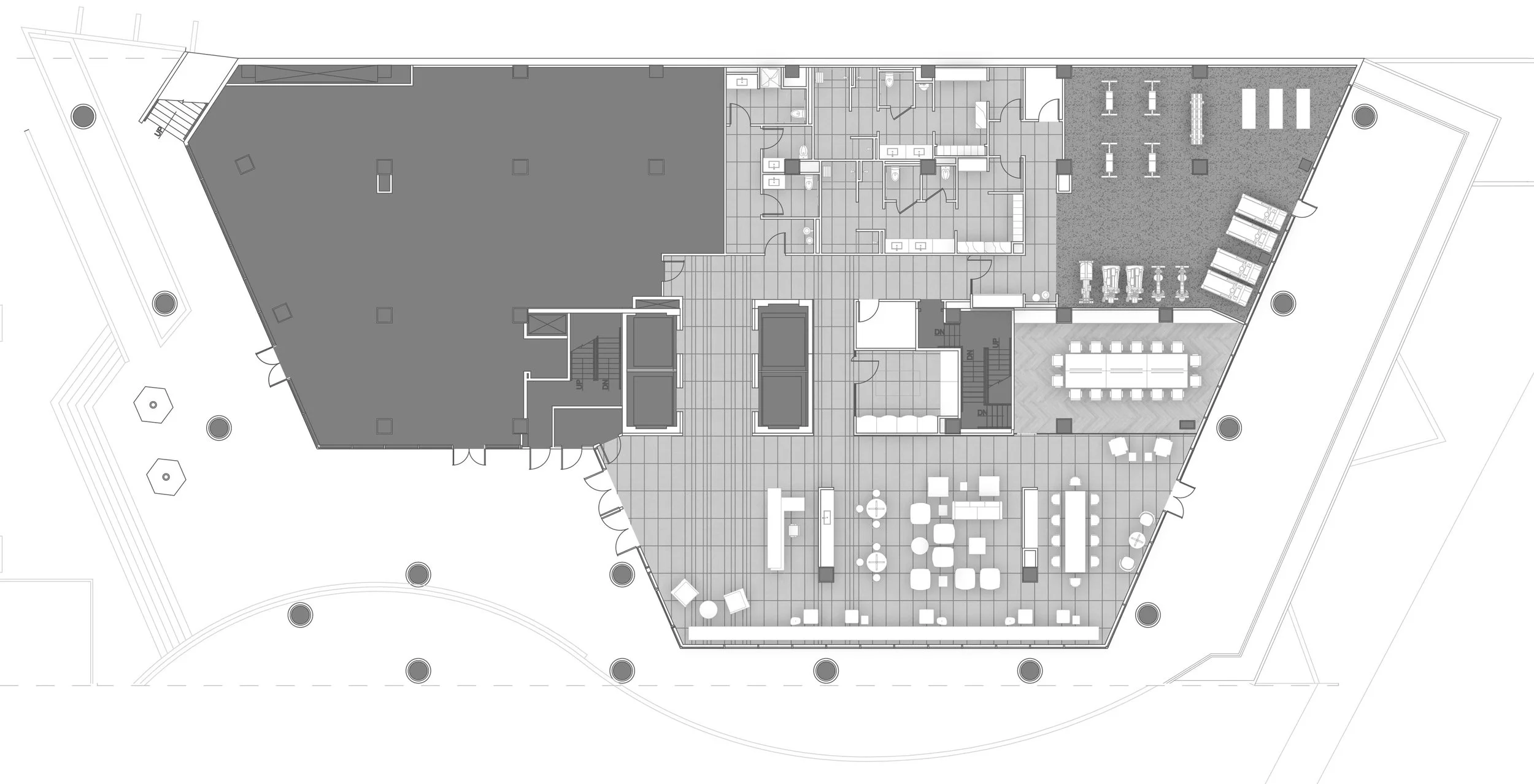 The renovation and modernization of the Park Place office building in Rosslyn, Virginia, creates a welcoming environment that leverages the use of natural light and charming sightlines. The open concept provides a calming contrast to the downtown neighborhood’s signature hustle and bustle. Newly created amenity spaces include a lobby, common area restrooms, an indoor-outdoor gym, open meeting and work spaces, and a coffee bar.